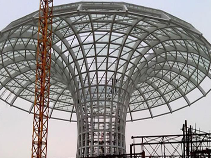 二、球形网架结构因其结构新颖,受力合理,自重轻、用钢量低等优点。如大型体育场馆球形卫辉螺栓球网架、公共场馆球形网架、电厂卫辉螺栓球网架、水泥工业球形网架、仓储物流球形网架、卫辉干煤棚工业球形网架、卫辉收费站卫辉加油站球形网架、展览中心、影剧院、商场、航站楼、候车厅、工厂卫辉车间、仓库、电视塔等球形螺栓球节点网架。国内球形网架结构主要分为:卫辉焊接球节点网架及螺栓球节点网架两种。螺栓球节点网架其构件工厂内加工量较大,现场安装便捷,适用于现场工期紧,卫辉施工条件、用电量受制约,网架形状复杂、卫辉杆件定位困难的异形结构。螺栓球节点球形网架系统基本由卫辉杆件、螺栓球、支撑支座等组成。按照节点形式可分为交叉卫辉桁架体系、四角锥体系、三角锥体系等。支撑方式多为固定支座支撑。对于大面积、大跨度及有特殊受力或伸缩要求的网架结构可采用橡胶支座、滑移支座、球铰支座等支撑形式,以满足结构自身的受力稳定、均衡,便于内力释放等设计要求。